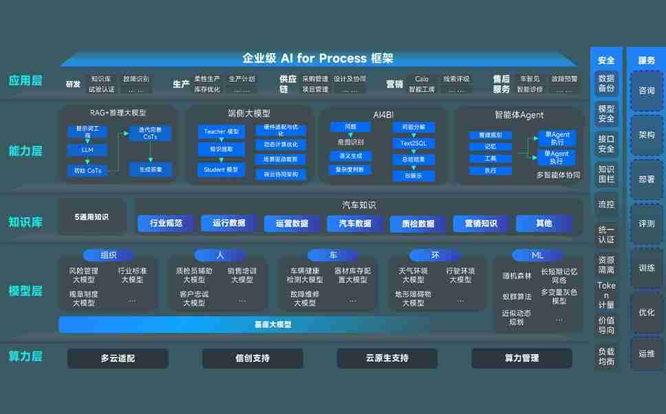 尊龙时凯问学智车解决方案是一套基于AI技术的汽车行业智能化系统,,,覆盖从底层算力到顶层AI应用的全栈方案。。。。方案由算力层、、、、模型层和应用层组成:算力层,,,,方案支持多种一体机配置,,,具备云端灵活部署、、多云适配以及动态优化计算资源的能力;模型层,,尊龙时凯问学平台版提供了企业级AI应用一站式构建与管理平台,,,支持基于后训练强化技术的汽车企业专属模型的训练、、、评测和运营;应用层,,,尊龙时凯问学DeepSeek版提供包括超级员工、、智能招采、、智能营销、、、、智能客服、、、AI for BI等一系列解决方案,,,可助力汽车行业实现数字化转型,,,,让管理更智能、、、响应更敏捷。。。
